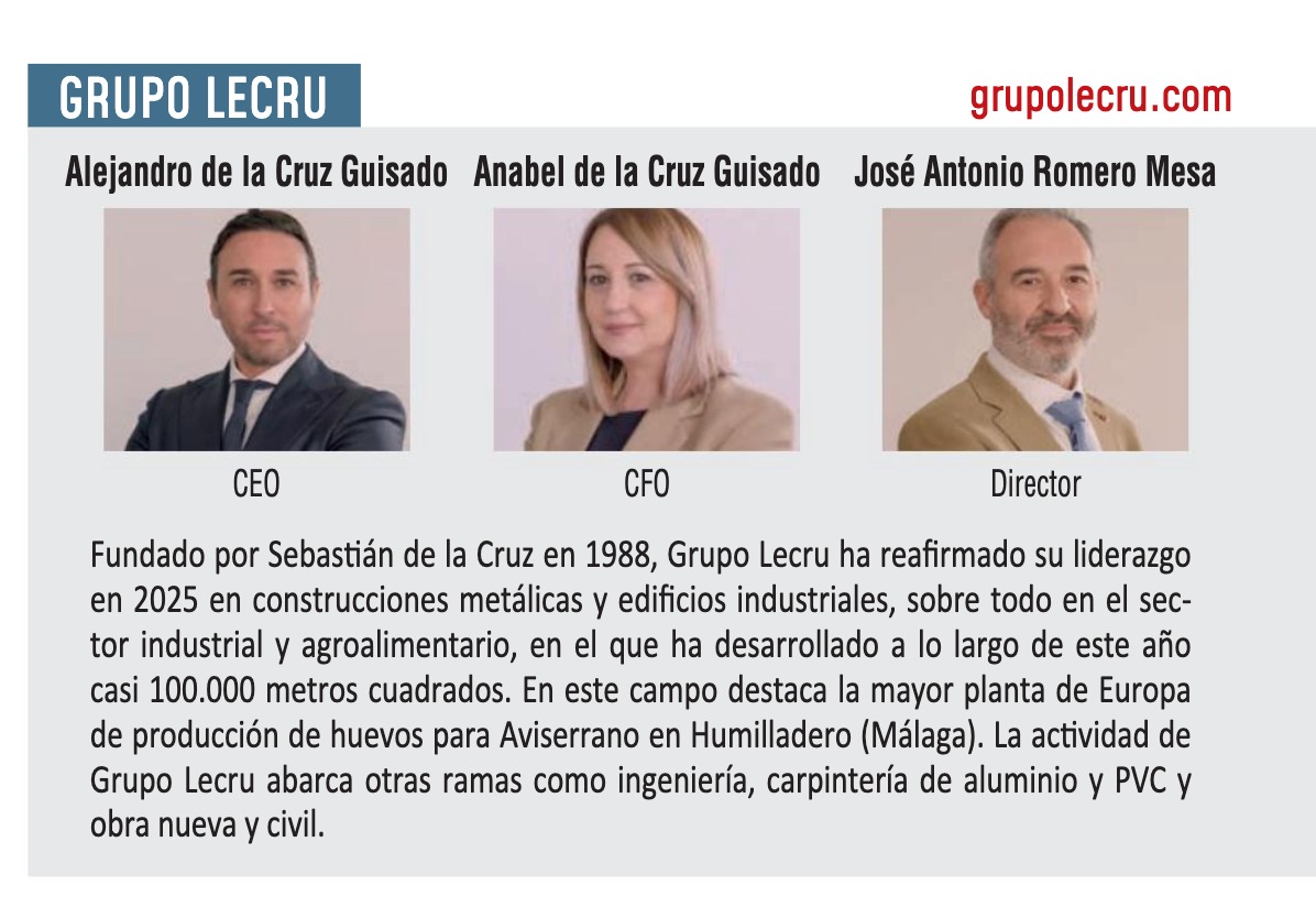La presencia de Grupo Lecru en la edición n.º 175 de Andalucía Inmobiliaria, al igual que en la n.º 171, supone un reconocimiento al trabajo constante de todo el equipo y a su aportación al desarrollo del sector de la construcción industrial y metálica en Andalucía.